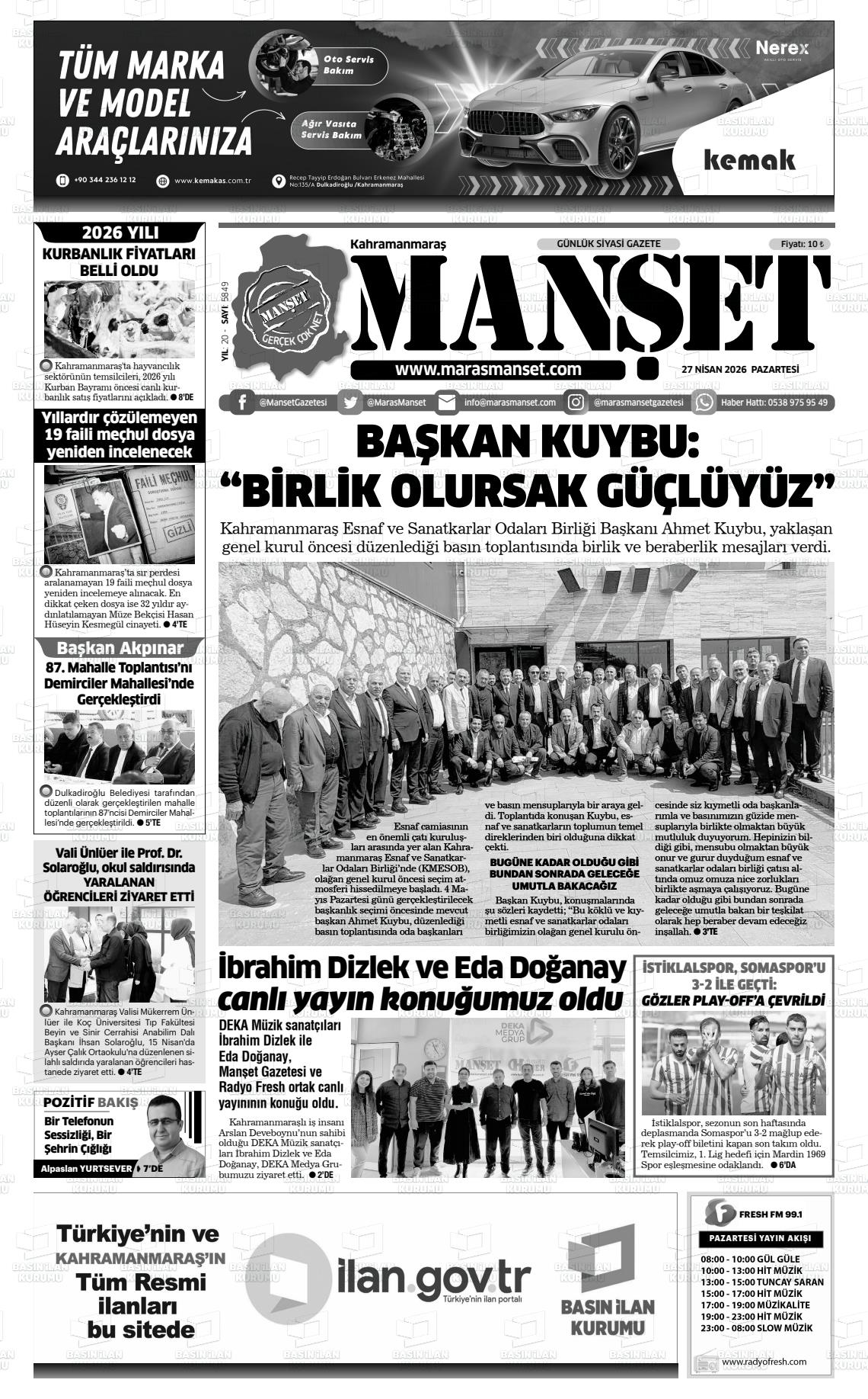 KAHRAMANMARAŞ MANŞET